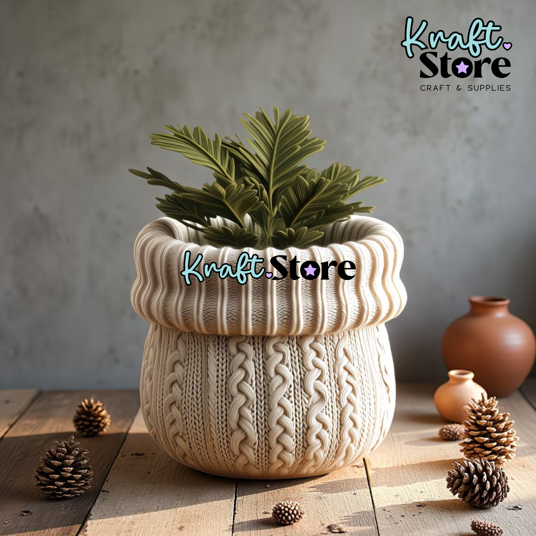 Crea piezas con alma. Este molde de silicona de alta calidad te permite replicar la calidez de un tejido de lana en materiales rígidos como eco-resina, cemento o escayola. Es el diseño perfecto para quienes buscan un estilo boho-chic o nórdico en su decoración.