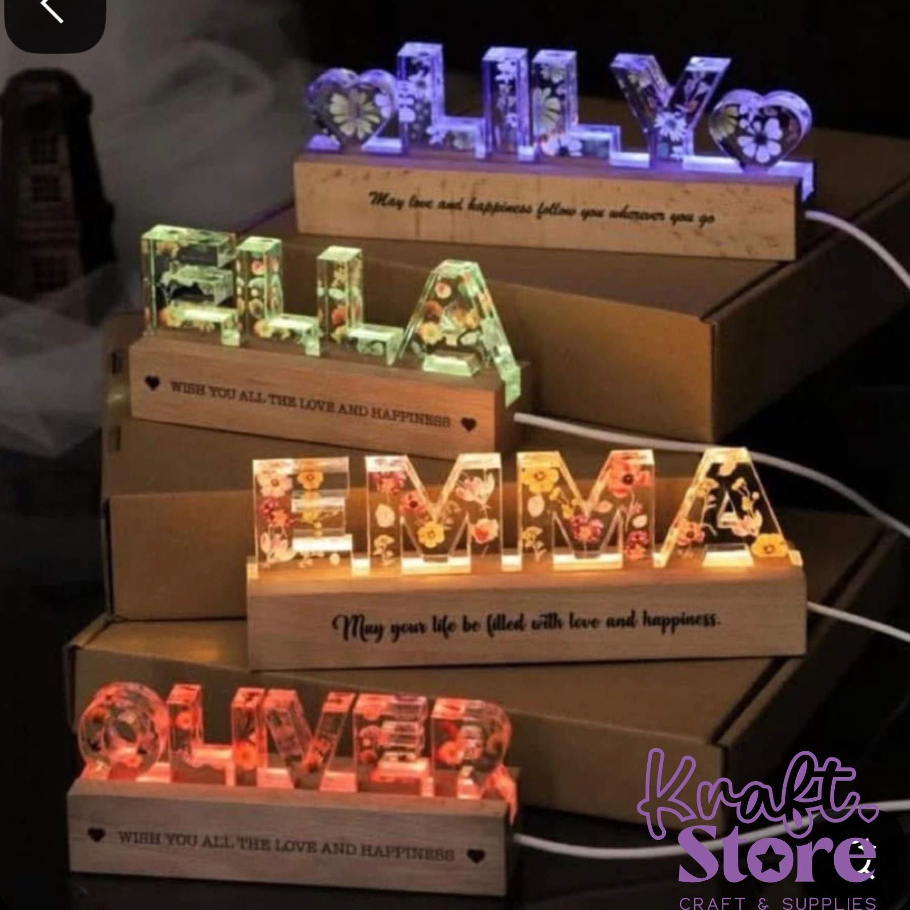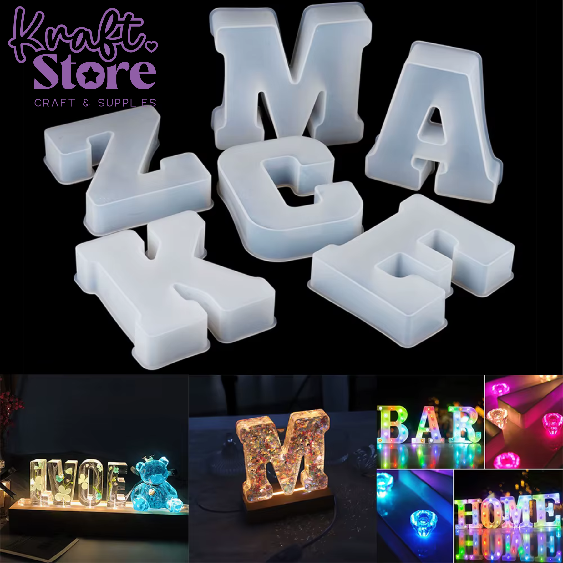 Artesanías: Llaveros XXL de resina epoxi, letras decorativas para lámparas LED o pisapapeles.