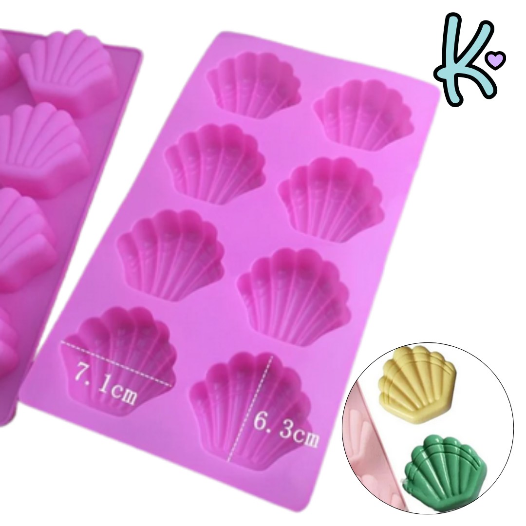 Molde de silicona flexible con diseños de conchas marinas de tamaño mediano, perfecto para crear piezas decorativas en cera o resina. Ideal para complementar velas artesanales, jabones o manualidades con temática marina y veraniega.