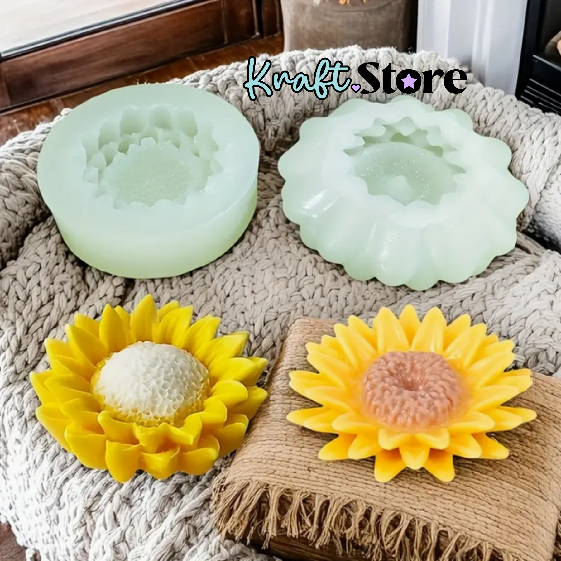 Molde flexible y resistente con forma de girasol, ideal para proyectos de resina epoxi, velas, jabones artesanales, yeso, arcilla o masa flexible. Su diseño detallado permite obtener piezas con textura realista y acabados perfectos.