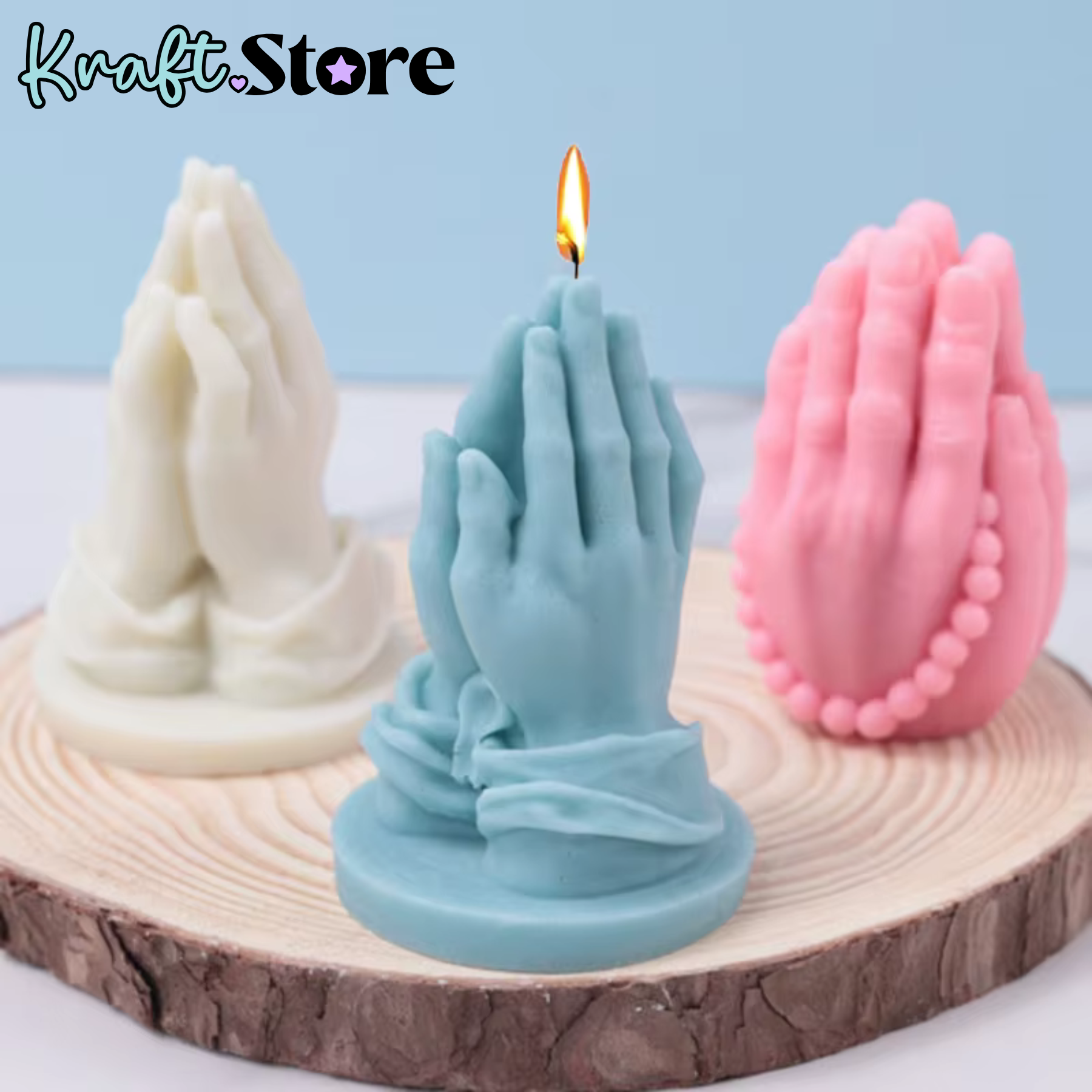Molde en silicona de alta calidad con forma de manos unidas en oración, ideal para crear velas, figuras religiosas o piezas decorativas en resina, yeso o cera. Su diseño transmite paz, espiritualidad y devoción, con un acabado detallado y elegante.