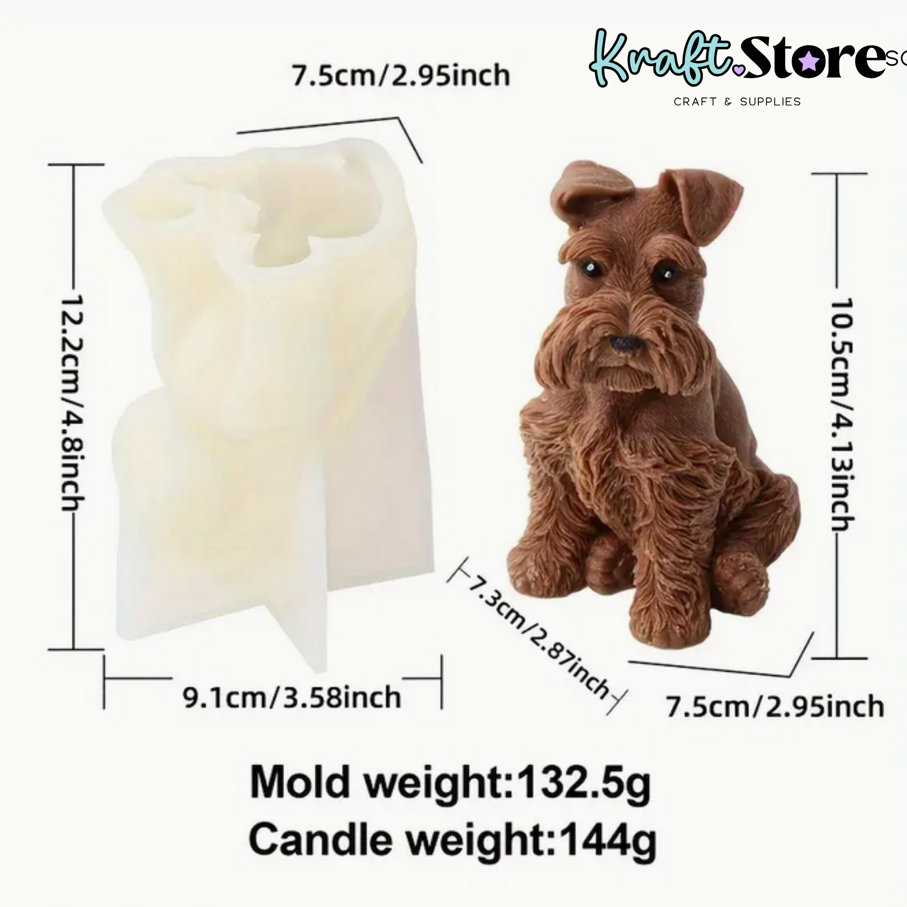 Encantador molde de silicona con forma de perro Schnauzer, ideal para crear velas decorativas llenas de ternura y realismo. Perfecto para los amantes de las mascotas o como detalle artesanal en decoraciones temáticas.