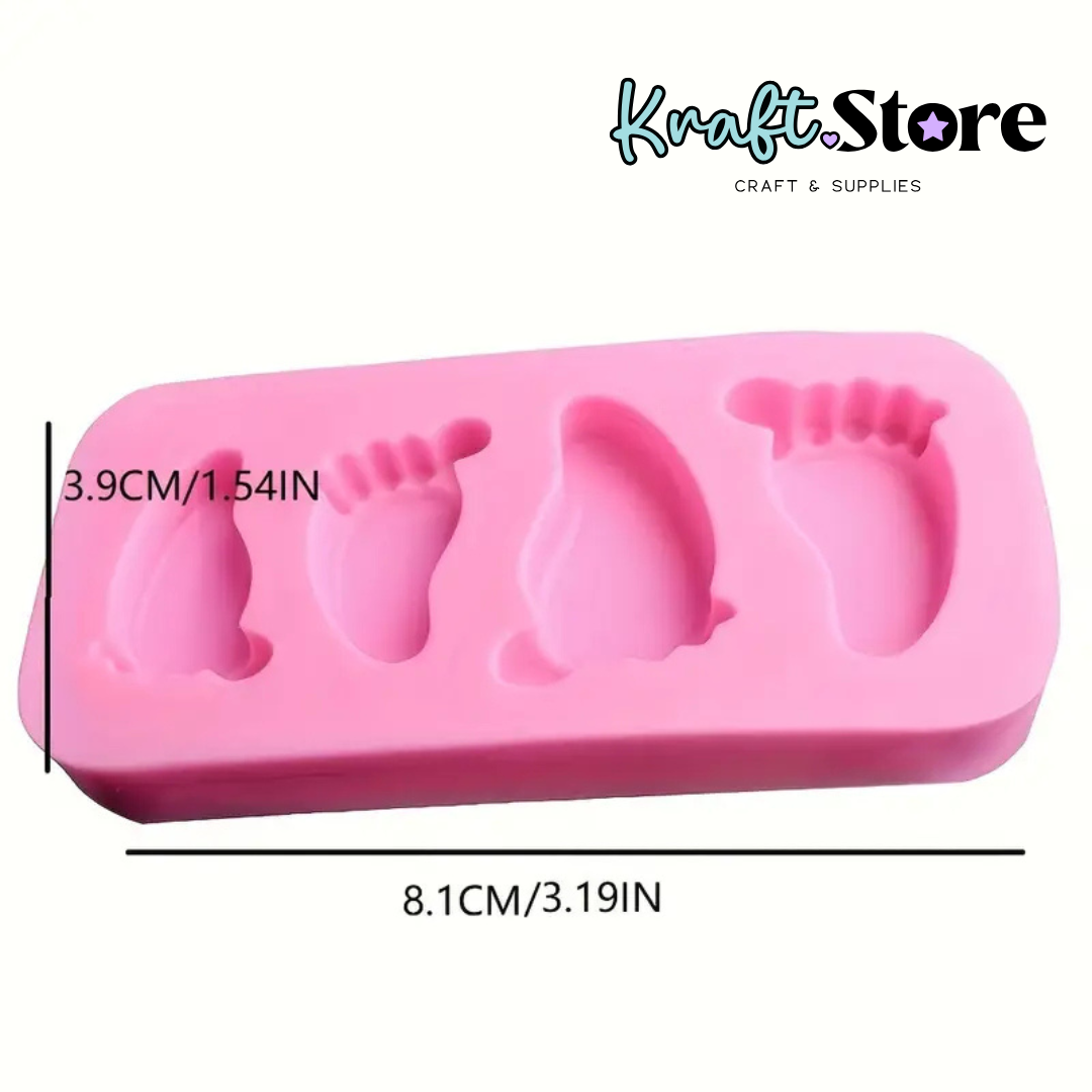 Molde en silicona con diseño de tiernos piecitos en dos tamaños diferentes, ideal para elaborar velas, jabones, resina, yeso y recuerdos artesanales. Perfecto para baby showers, bautizos o detalles personalizados.