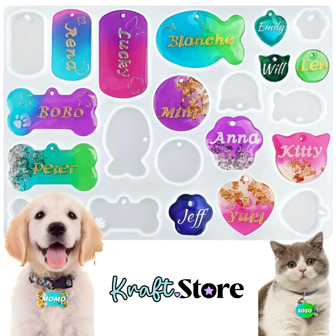 El molde de plaquitas variadas de mascotas para resina es perfecto para crear identificadores, dijes, llaveros y accesorios personalizados. Con diferentes formas y tamaños, te permite elaborar piezas únicas y resistentes, ideales para mascotas y proyectos creativos.