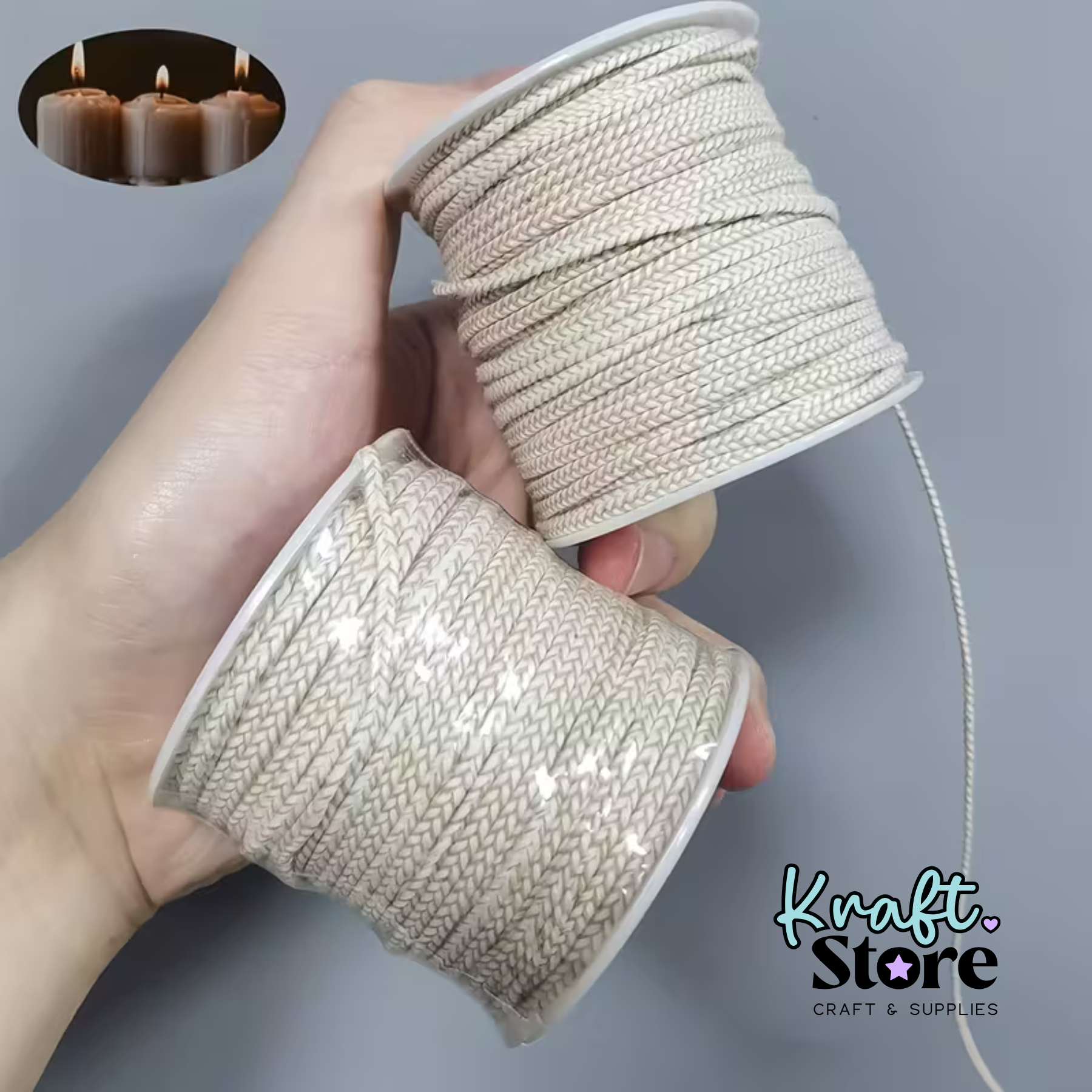 Mecha de alta calidad diseñada específicamente para velas de molde y figuras pilares. Fabricada en algodón 100% natural, sin plomo ni zinc, garantiza una llama estable, una combustión uniforme y mínima producción de humo. ¡Corta solo lo que necesites y evita desperdicios!