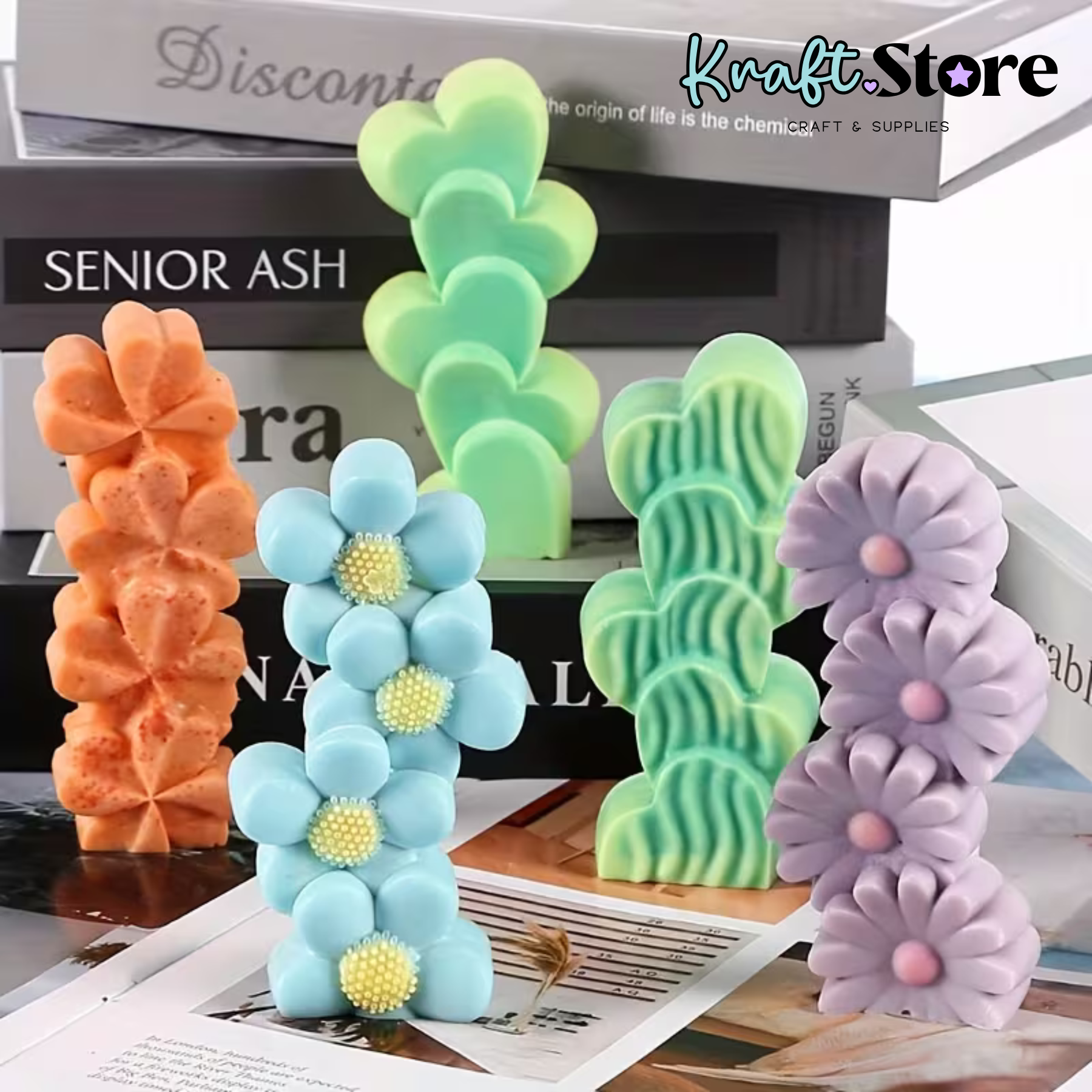 Nuestros moldes de pilares están diseñados para artesanos que buscan salir de lo convencional. La textura de flores y corazones no es solo superficial; está grabada con profundidad para que la luz de la llama resalte cada relieve mientras la vela se consume, creando un efecto visual único.